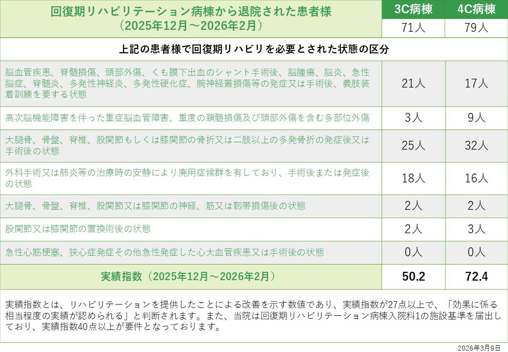 | 3C病棟 | 療養病棟 | 52 | 回復期リハビリテーション病棟 |