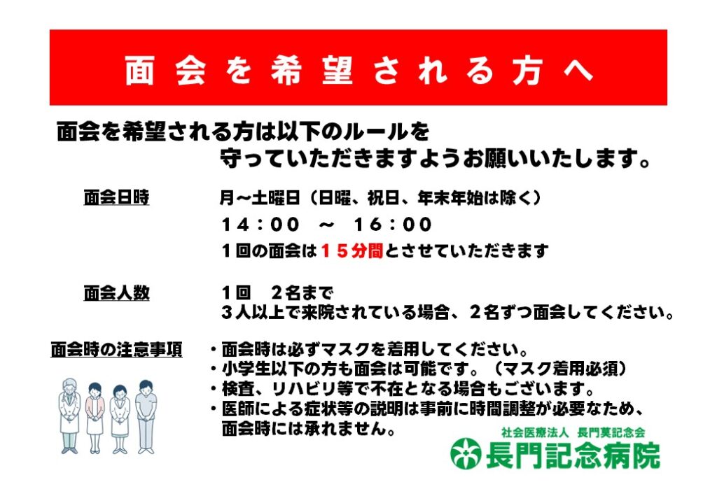 面会のルールが一部緩和されます。下記のルールにご協力ください。