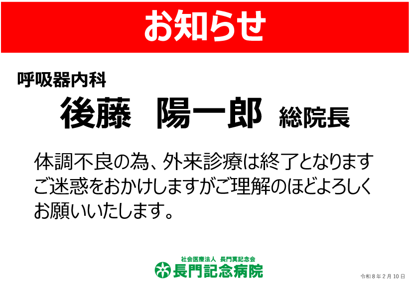 後藤総院長の外来診療は終了となります